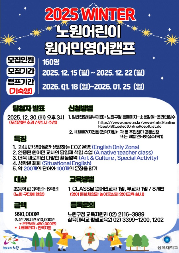 제목 2025 겨울 노원어린이원어민영어캠프 운영