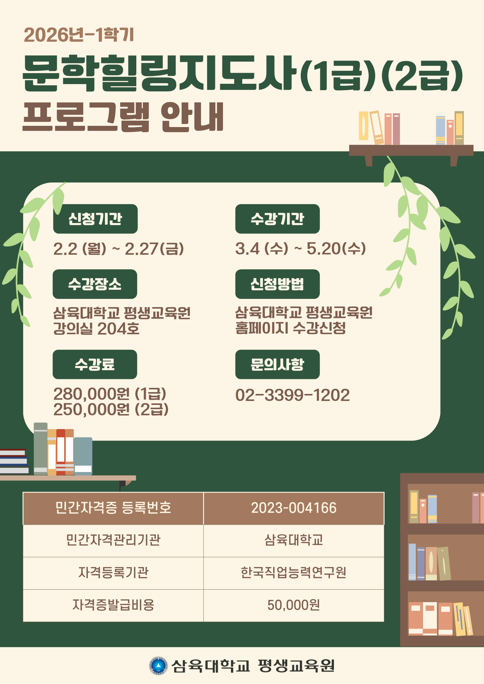 제목 ♣♣[자격증과정_문학힐링지도사(1급)] 3/4(수)개강 / 2026년 1학기 일정 및 수강 신청 안내♣♣