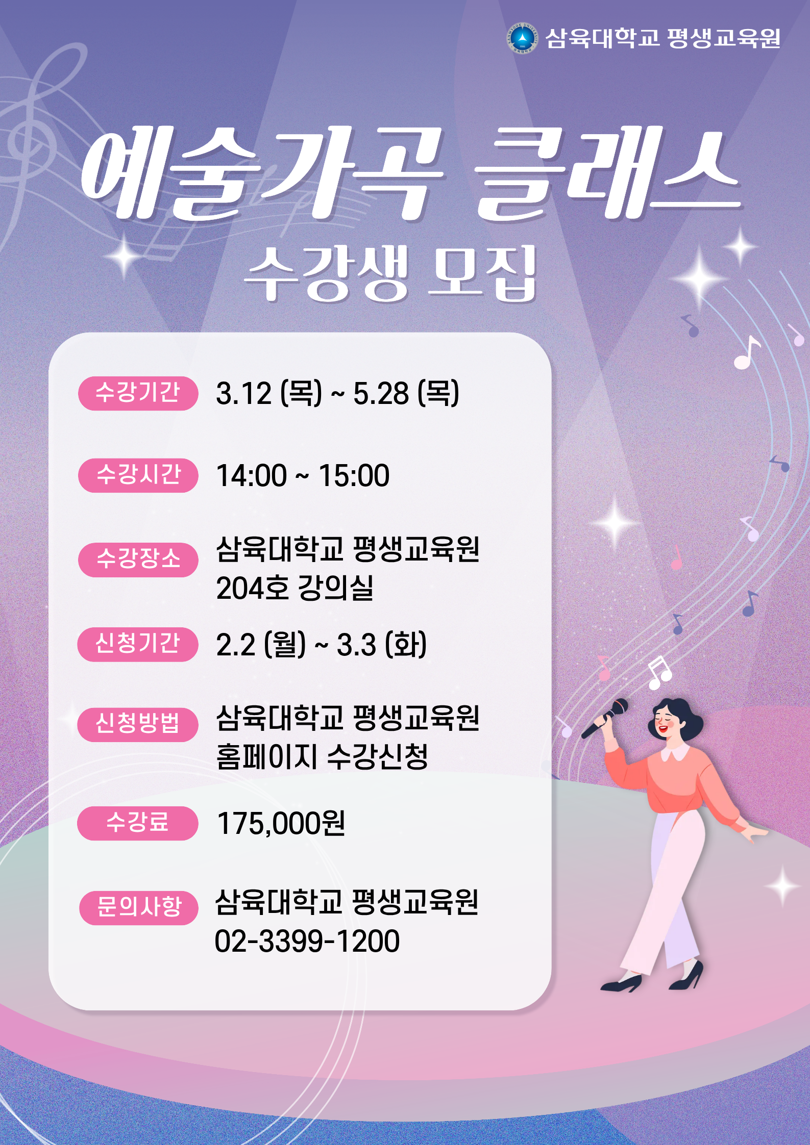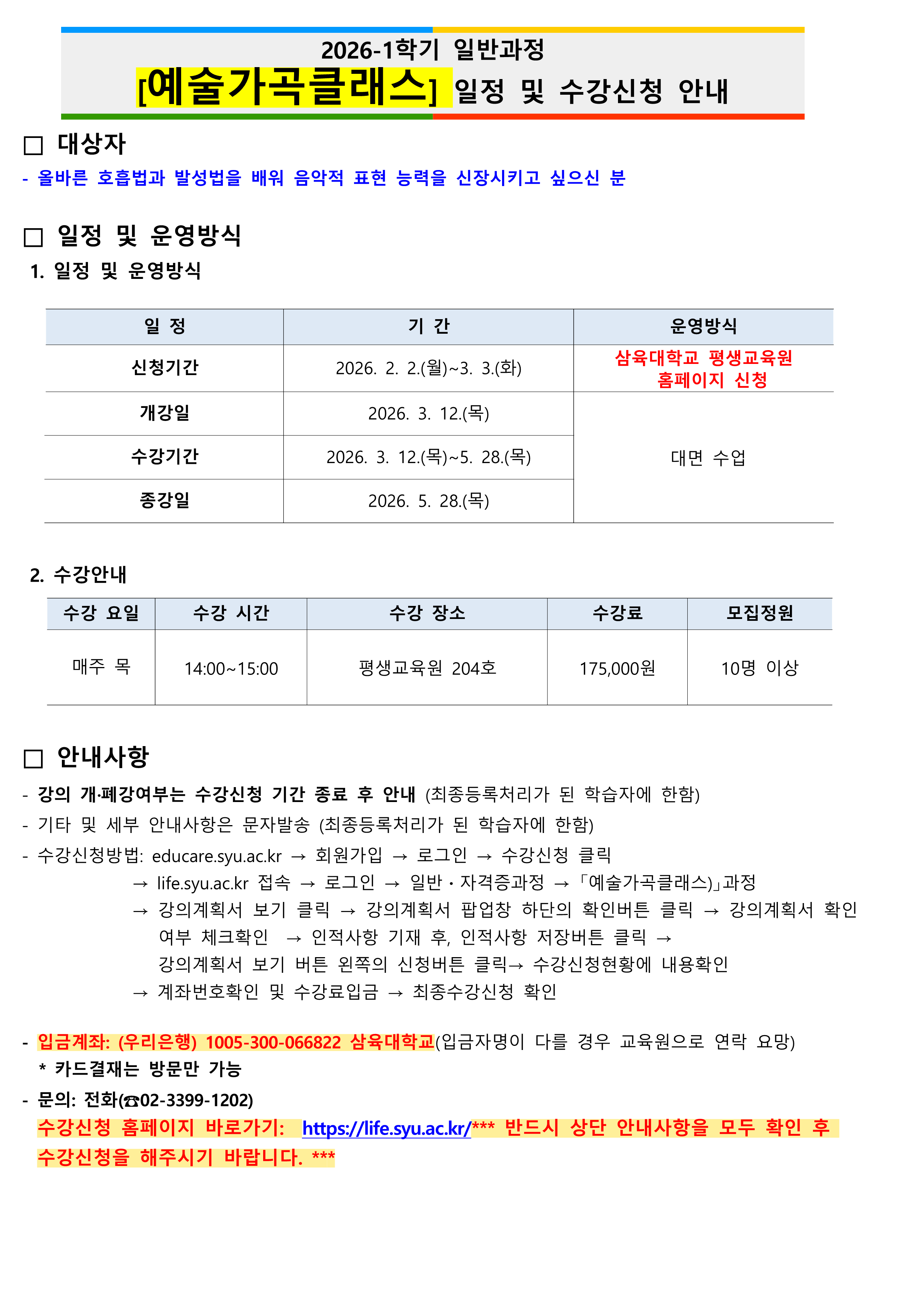 제목 ★★[일반과정_예술가곡클래스] 3/12(목) 개강 _ 2026년 1학기 일정 및 수강신청 안내★★