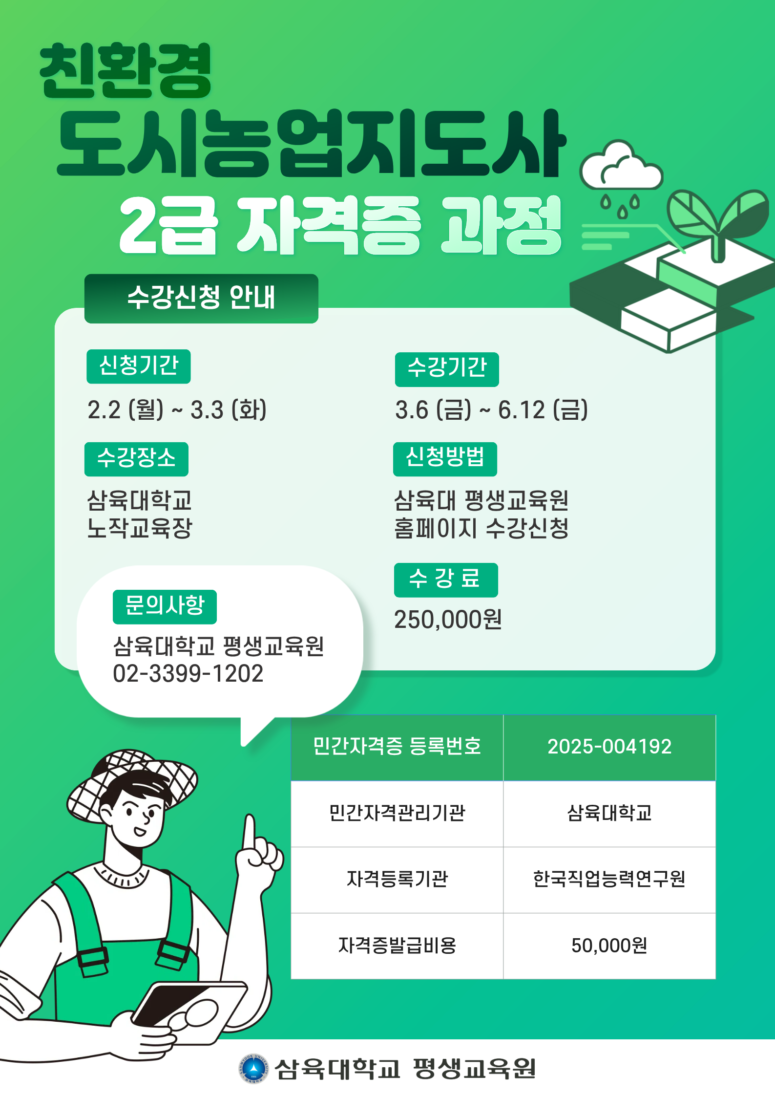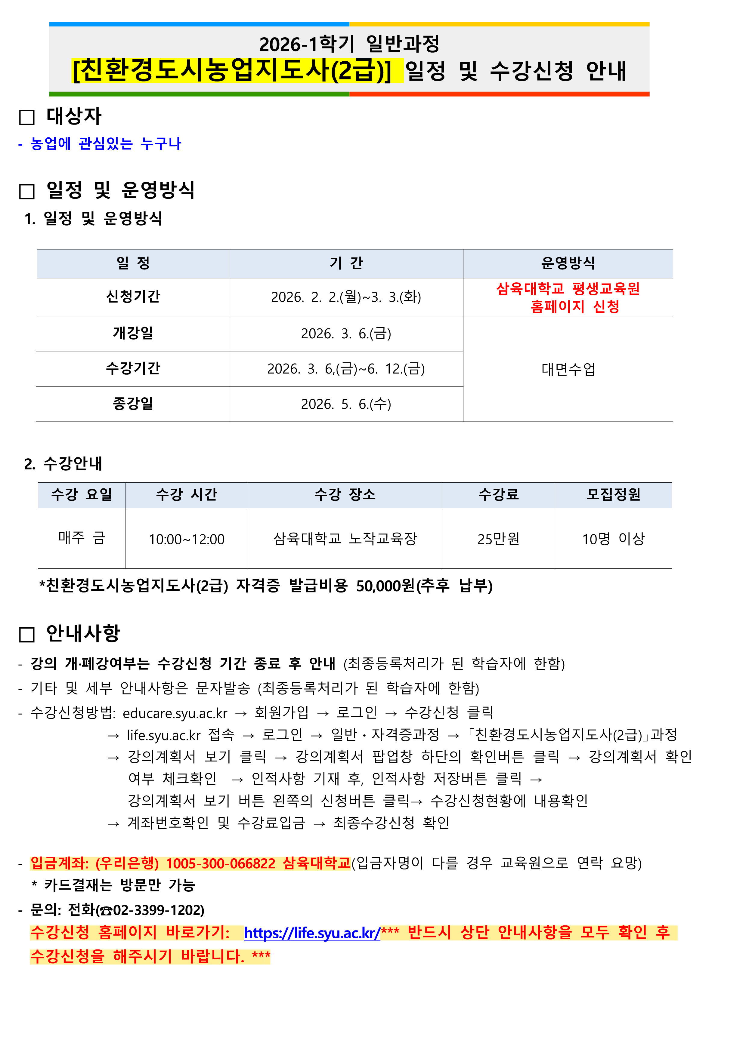 제목 ★★★[자격증과정_친환경도시농업지도사(2급)] 3/6(금) 개강 _ 2026년 1학기 일정 및 수강신청 안내★★★
